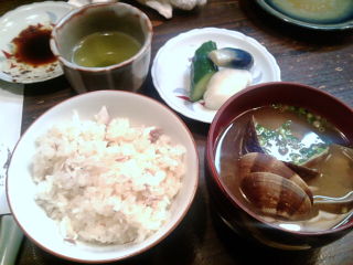 ④しめはだしがめっちゃ聞いてるお味噌汁と鯛飯。