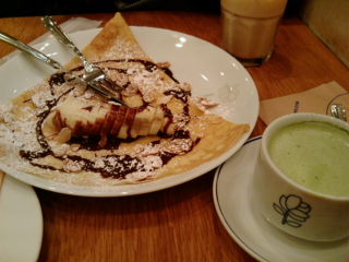 写真はバナナチョコクレープと抹茶ラテ◎